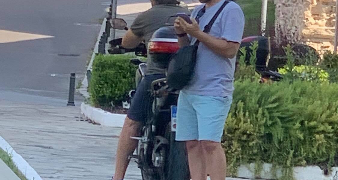 Στη φωτογραφία απεικονίζεται (αλλά δεν φαίνεται το πρόσωπό του) ο Ζοπόγλου να έχει σταθμεύσει τη μηχανή του πάνω στο πεζοδρόμιο μπροστά από τις Καμάρες. Δε θα έπρεπε να την σταθμεύσει σε έναν προβλεπόμενο χώρο ελεγχόμενης στάθμευσης;